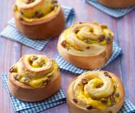 250 g Mehl 30 g Olivenöl 120 g Wasser 1 Prise Salz. 200 g Zwiebeln halbiert. 100 g Schinkenwürfel mager.