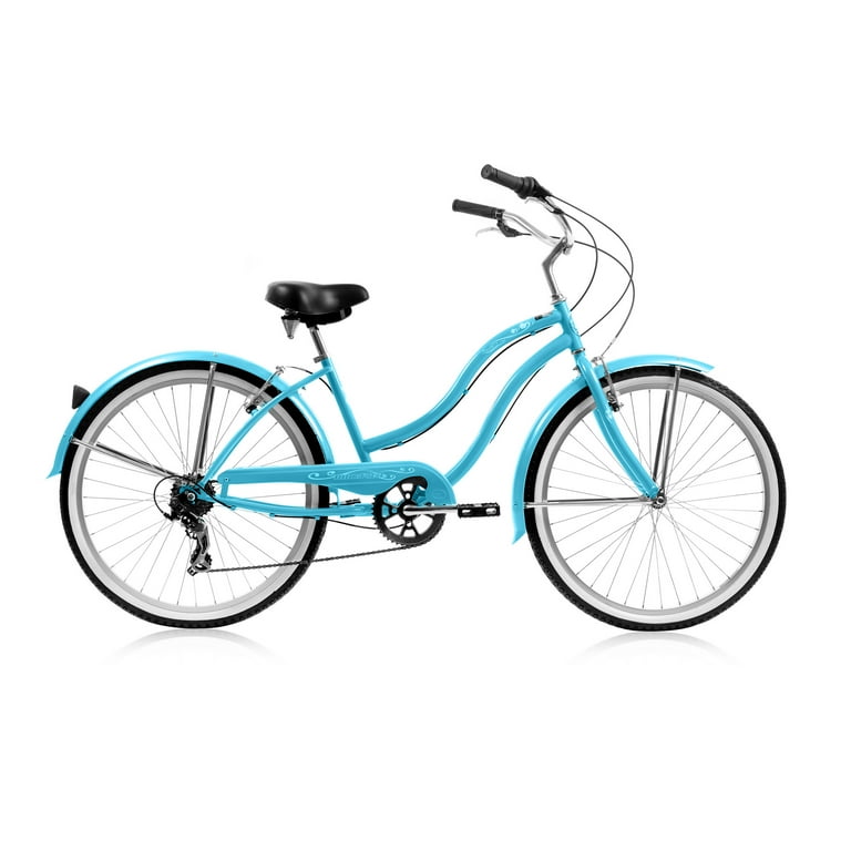 Wonder Wheels 26 In Beach Cruiser Shimano Tx 35 7 Speed Bicycle Bike V Brake Stainless Steel Spokes One Piece Crank Alloy Rims 36 H With Fender Baby Blue Walmart Com